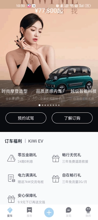2、点开爱车,这里可以VR看车了解车辆的配置信息以及预约试驾;